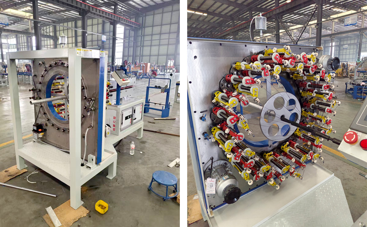 易能,380V,三相 。编织碳纤维鱼竿手柄,普通电机+双变频,PLC触屏操作,履带牵引,做穿手柄芯杆,带急停按钮。110摇头锭子,纱管55*163mm。可缠绕膜密封,上门安装调试。