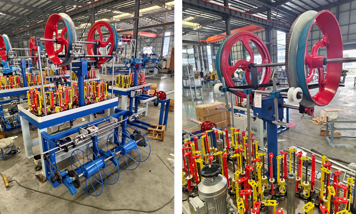 配置:四槽绳轮 / 联接滚筒 / 斜滚筒 / 平滚筒 断线自停装置 普通国产电机 + 变频器调速 节距齿轮调整节距(编织疏密) 锭子弹簧调整放丝张力 松紧带:加送胶装置(芯线伞杆) 金属丝:电线锭子:φ44*85mm 收放排线架:需要客户提供线盘尺寸。