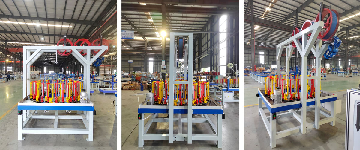 材料:细铜丝,含撑线盘,380V,三相,益电通。编织机编织铜导电带,三个大平滚筒牵引,后带压带轮,双变频调速,编织速度和牵引速度均可调整,带断丝自停装置。 168电线锭子,1.2簧,纱管5*280,可缠绕膜密封,可现场安装调试。