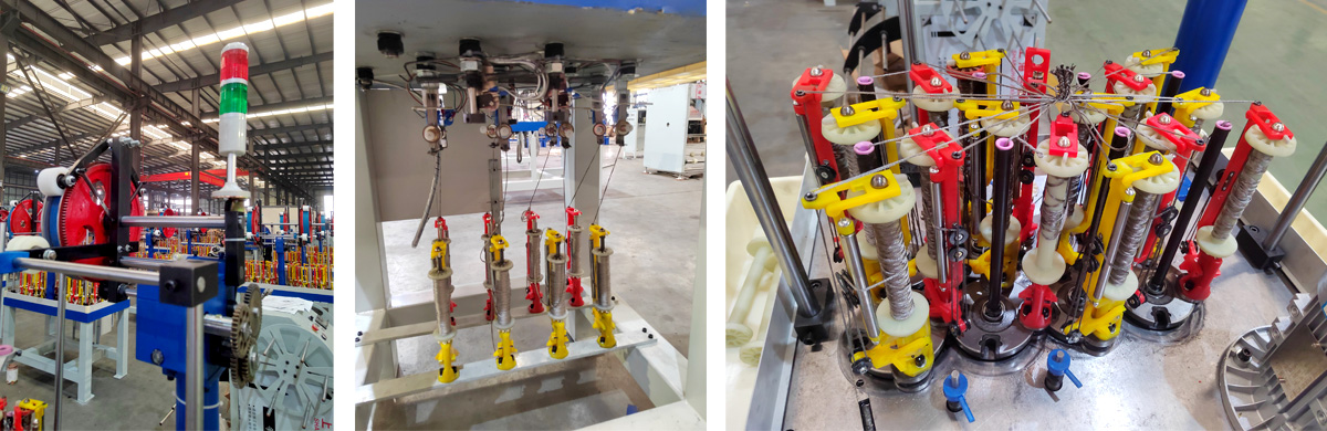 中心芯管,380V,三相,益电通。 2.编织金属纤维丝 3.设备做好后客户可带材料来厂试机 合格后再发货 。4.配停机装置4个断芯线停车开关。配报警灯 纱管盒 机器脚垫。5.配芯线管。6.机架下带锭子,装纱管放线。 90加长电线锭子,47*142纱管。可缠绕膜密封,现场安装调试。