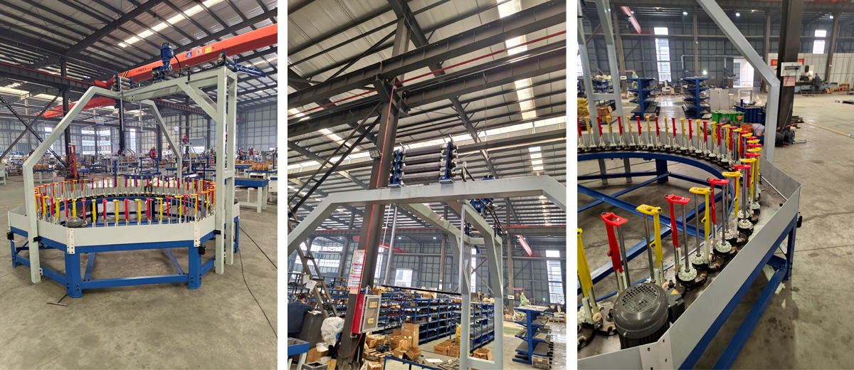编织产品:鞋材。材料名称:皮条。规格:72锭压一锭数:72锭。材料规格:7mm带芯线。 牵引方式:四压辊联接滚筒收线,后带双压辊牵引。不带穿线板,两侧带穿线...